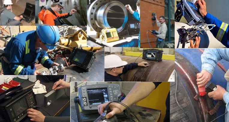 Ultrasonic Testing (UT) utilizes a high frequency, high energy cone of sound from a probe to “scan” the interior of a component for volumetric flaws or discontinuities. The sound wave travels within the component and reflects off any internal features, including the walls of the component and any defects within it. An echo that is reflected earlier on the CRT screen is a sign of a discontinuity at that location. By moving the probe in a methodical manner across the surface of the component, an operator can not only measure the thickness of the component (Ultrasonic Thickness Gauge Measurement), but also detect any defects within it. UT is often deployed to detect internal discontinuities in welded plate and pipes on site, and for measuring wall thicknesses of in-service pipes, boilers and pressure vessels